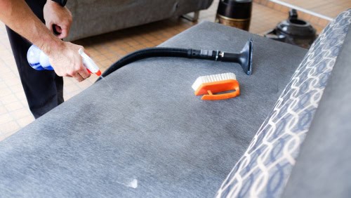 You may want to dab the stain with a dilute liquid detergent solution prepared using warm water. But avoid rubbing or scrubbing this kind as it allows the spread of the stain to an even larger area. It is more convenient for professional sofa cleaners to deal with troublesome areas using steam or shampoo cleaning.